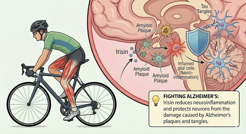 Bằng cách làm dịu phản ứng viêm trong não, irisin bảo tồn các mạng lưới thần kinh mà bệnh Alzheimer tìm cách phá hủy.